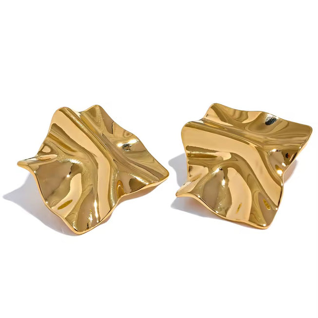 Gold Earrings - Chunky Wavy Square Studs | Bend the TrendMake a sophisticated, modern statement with these sculptural stud earrings. Their unique, free-flowing shape and polished gold finish create a...