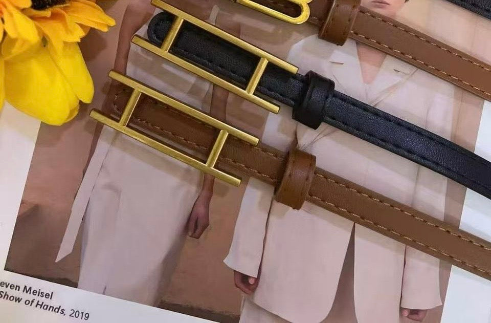 Minimalist with a bold twist—this slim belt features a modern double-bar gold buckle and a sleek leather-look finish. Designed as an effortlessly chic accessory to define your waist and elevate everything from casual jeans to office wear.