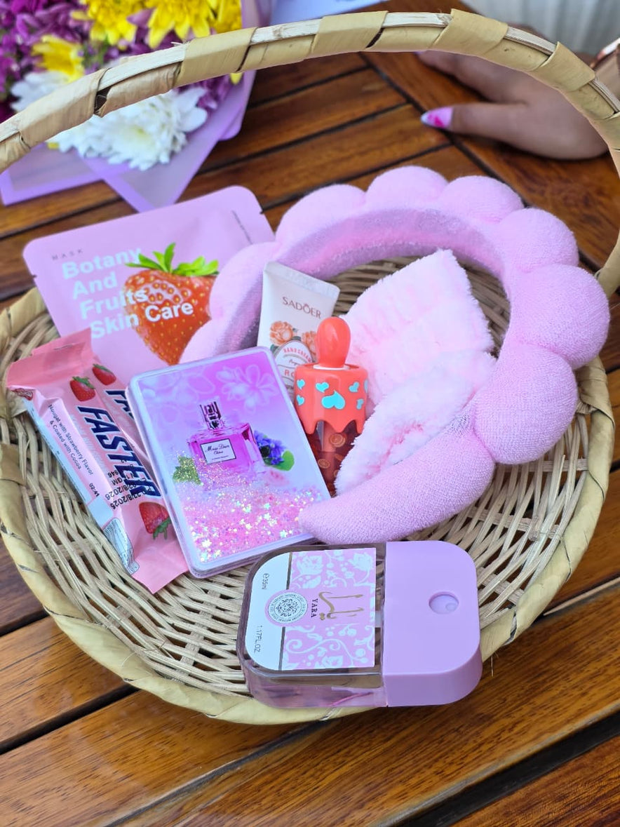 A gentle, feel-good gift designed for rest, glow, and small everyday luxuries. The Soft Girl Self-Care Basket blends skincare treats, sweet indulgences, and cozy essentials—beautifully arranged in a reusable woven basket for a calm, elevated unboxing experience.